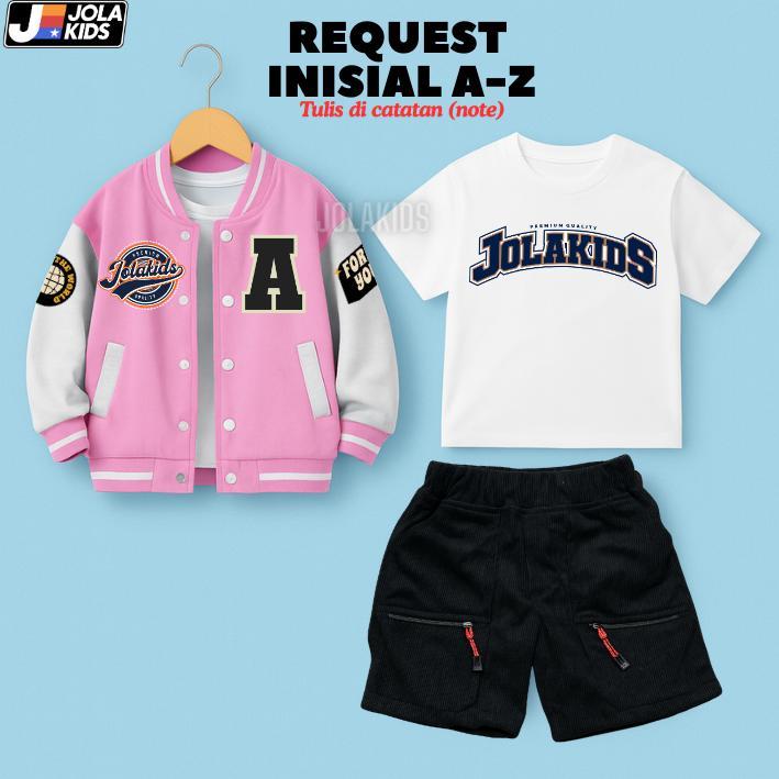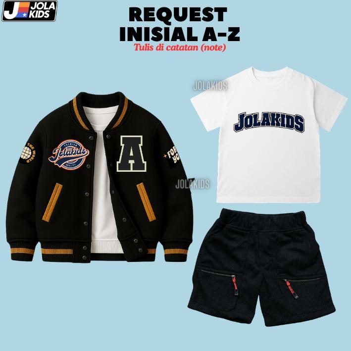 JOLAKIDS Special Bundling Jaket Baseball Inisial + Stelan Baju Anak 2 - 12 Tahun