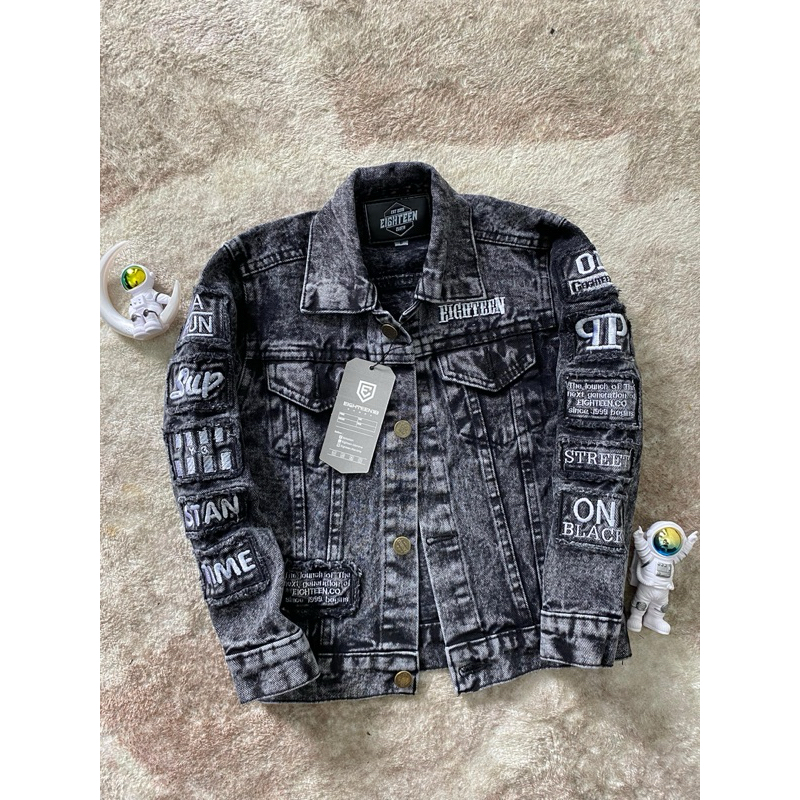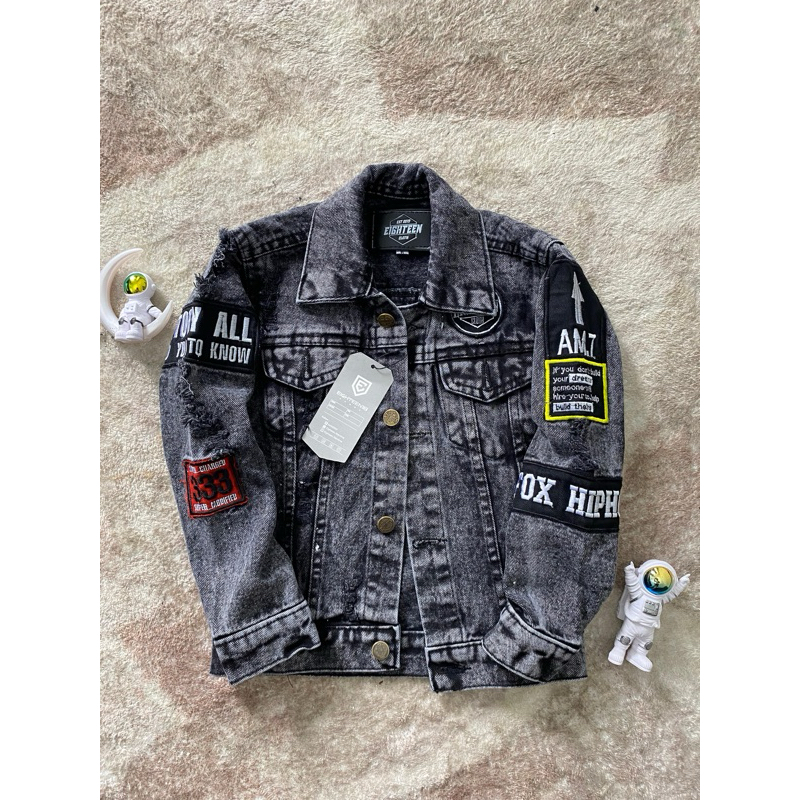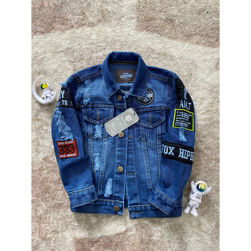 Jaket Jeans Denim Anak Laki- Laki Motif Bodir Fashion Bahan Tebal Nyaman Di Pakai