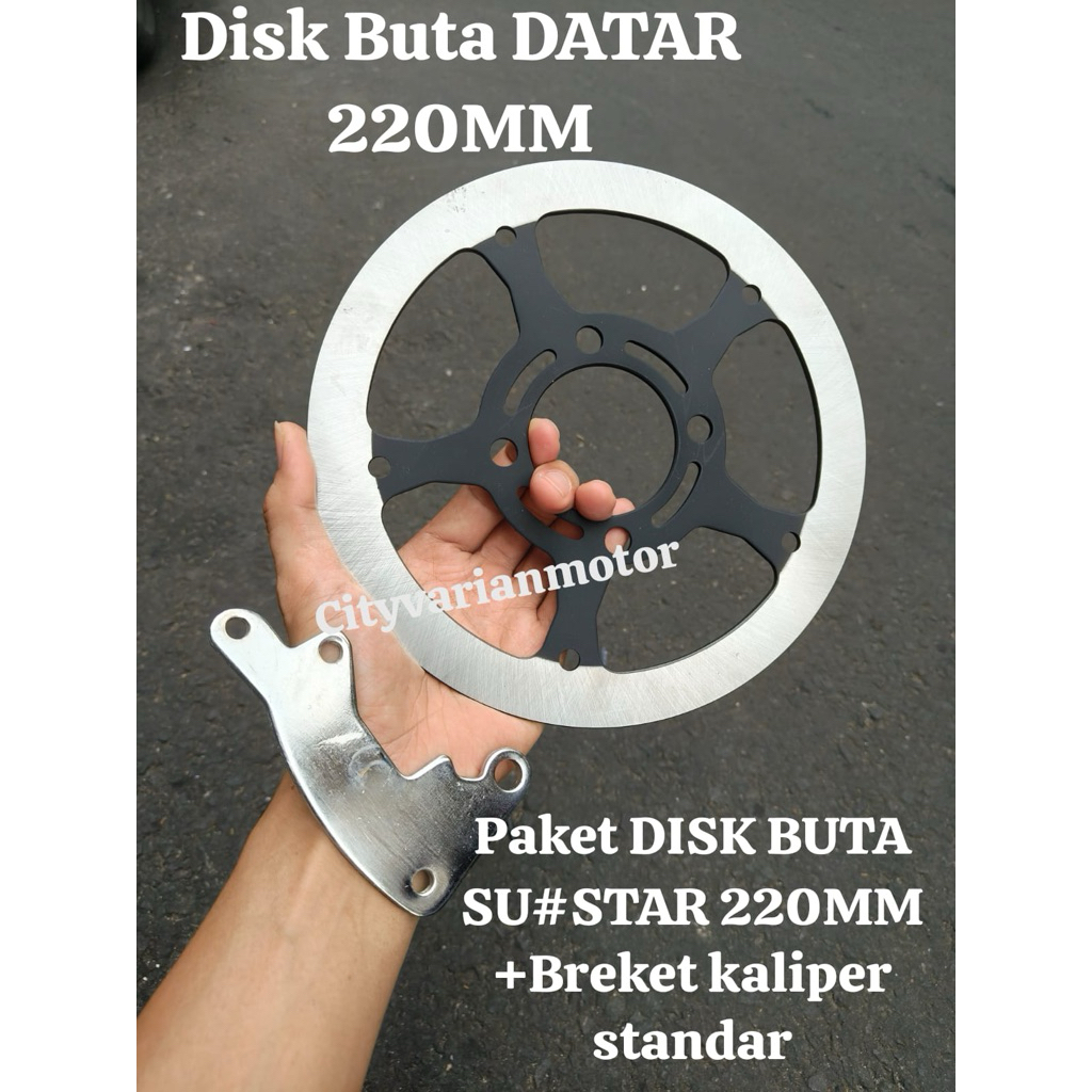 Promo Paket 2In1-Disc Piringan Cakram Depan Sunstar Buta 220Mm Datar + Breket Kaliper Standar Motor Beat Vario 125 150 M