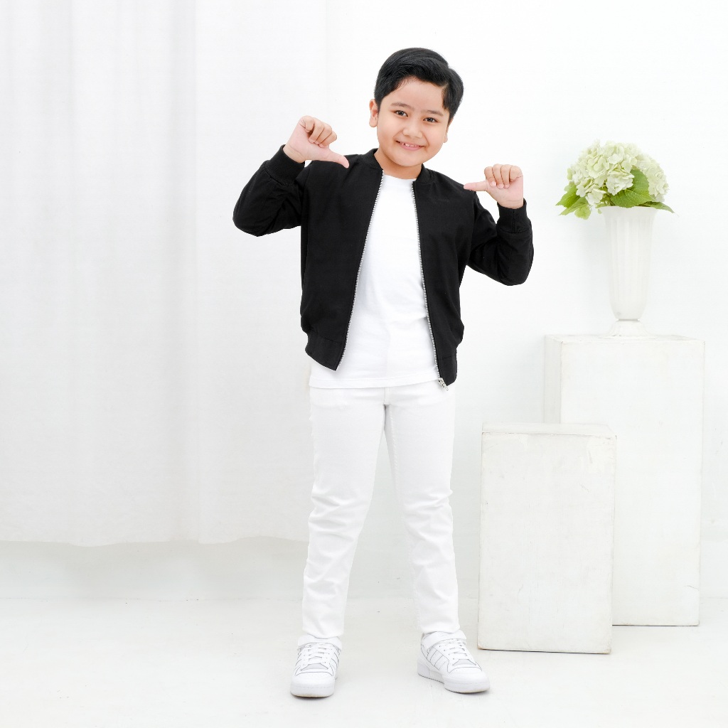 Brofash Jaket Bomber Canvas Anak laki Laki Cowok Umur 2 3 4 5 6 7 8 9 10 11 12 13 Tahun Warna Hitam Original Casual Kere