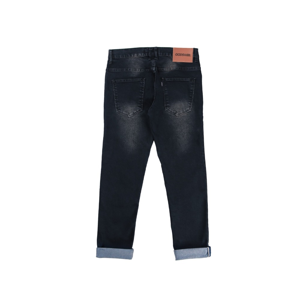 GodsWeel Celana Pria Panjang Selvedge Slimfit Meral Jeans Longs Black Indigo Blackjazz Stretch