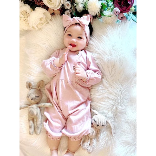 Jumpsuit Bayi Vania Bahan Katun Free Headband 0-12 Bulan