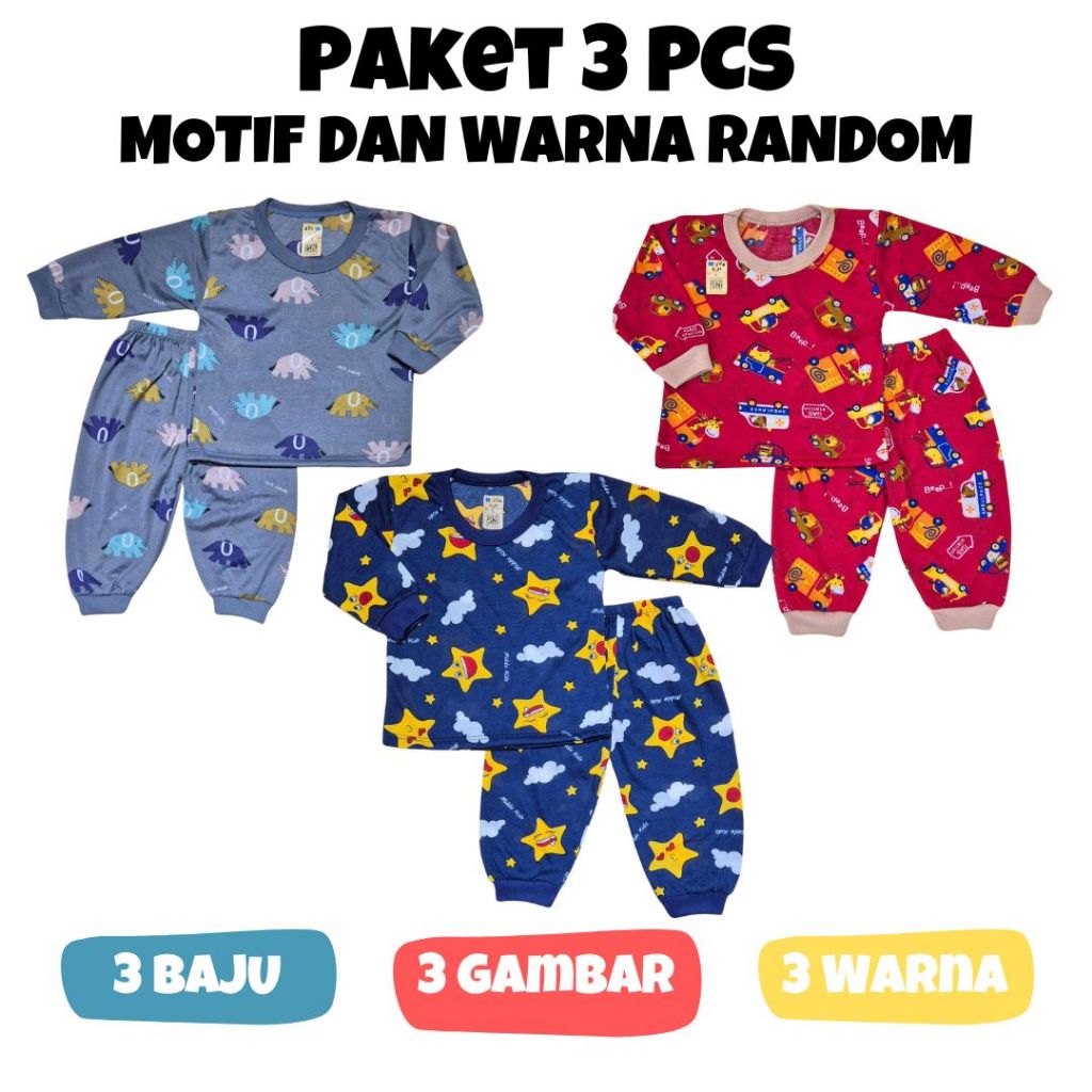 PAKET 3 PCS Piyama Fullprint Anak Laki Laki 0-2 Tahun / Baju Tidur Tangan Panjang / Baju Bayi Setelan Panjang / Baby Let