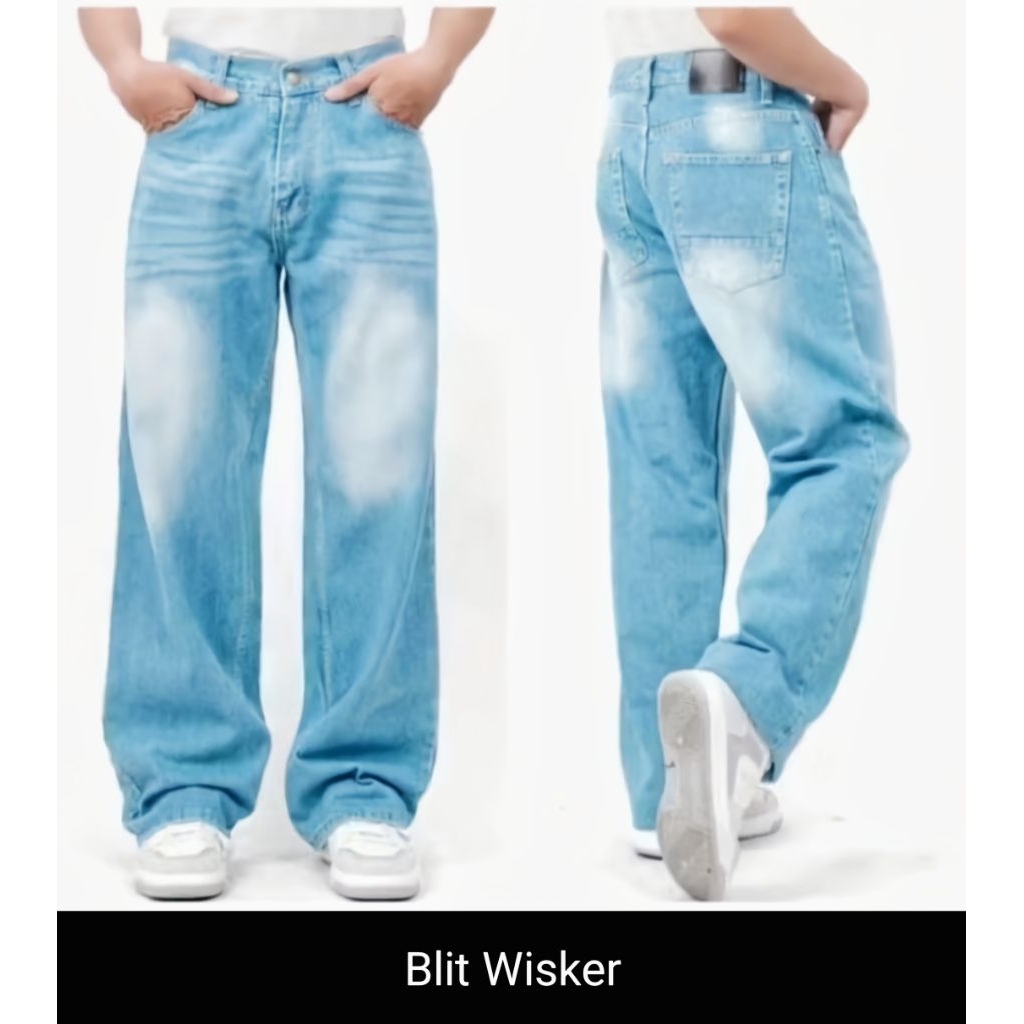 Celana Panjang Pria Jeans Gombrong Skena cowok baggy jeans gombrang wisker