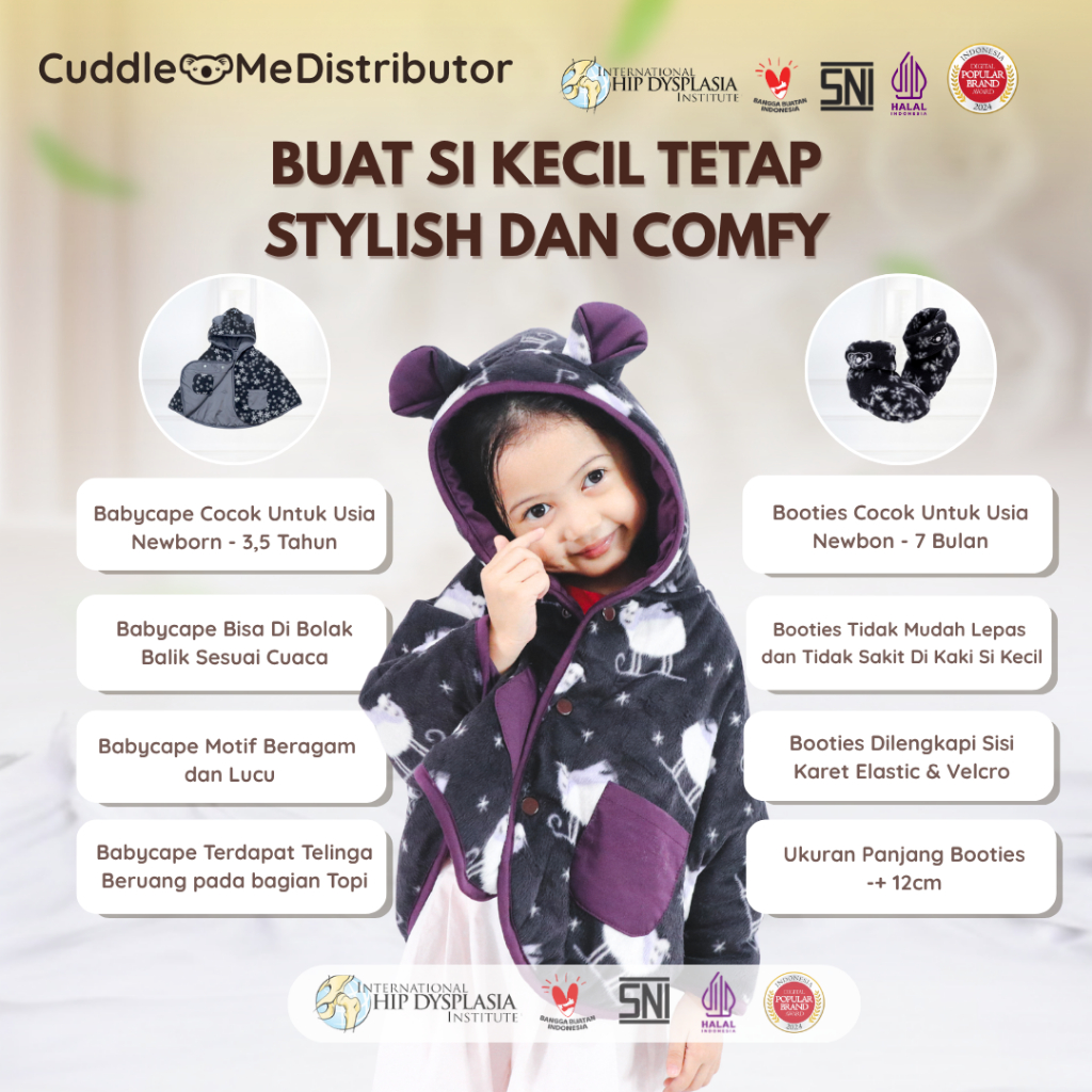 Kado Set Jaket Bayi Baby cape Cuddle Me Set Booties bolak balik mantel motif selimut topi premium