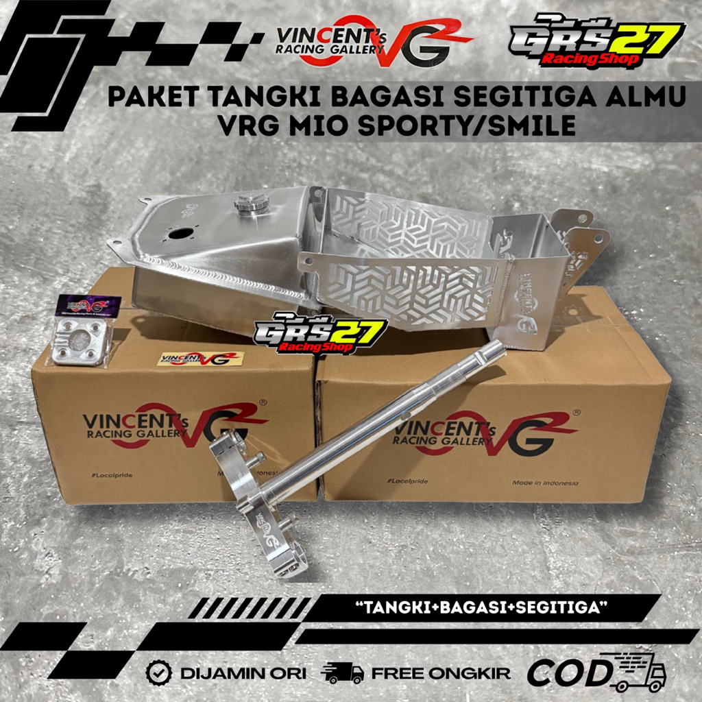 PAKET SET TANGKI BAGASI BOX AKI DAN SEGITIGA ALMU ALUMUNIUM VRG YAMAHA MIO SPORTY SMILE ORI ORIGINAL VRG RACING