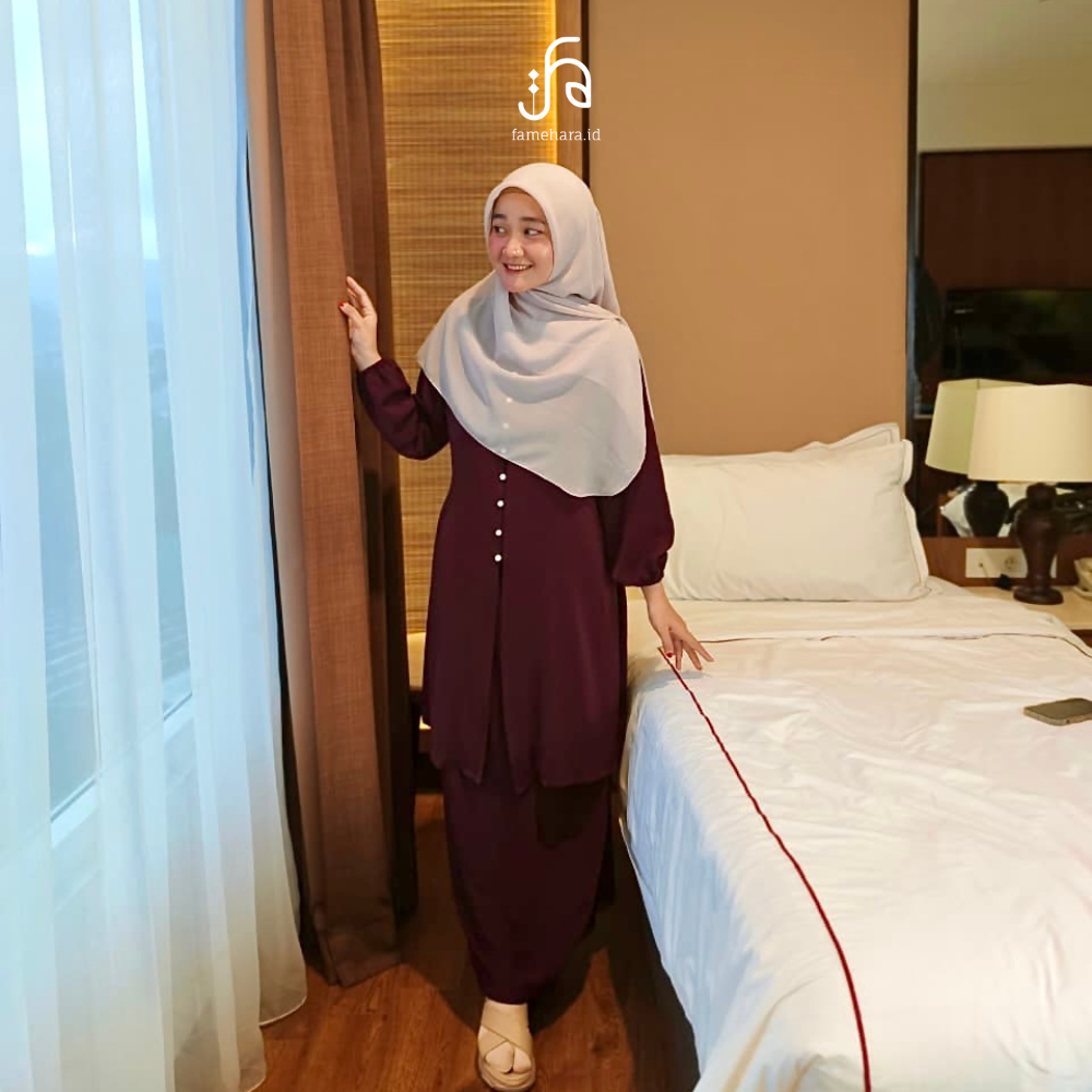 Famehara.id Rania Oneset Tunik Baju Kurung Malay Kondangan Cantik Elegan