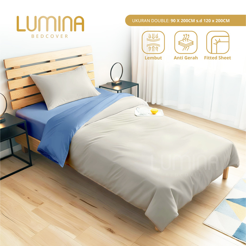 Lumina Bedcover - Sprei & Bedcover Set Oatmeal Mix Royal Blue - Ukuran Lengkap 140x200/180x200/160x200/200x200