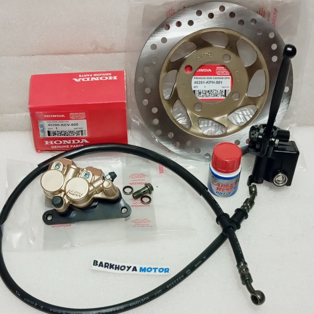 Paket 5 Item Kaliper Rem Depan Set Cakram Karisma Supra X 125 Revo Lama Fit New KEV Set Master Rem Assy + Selang Rem + Minyak Rem