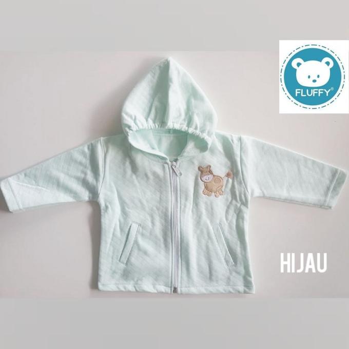 JAKET BAYI FLUFFY BORDIR SIZE: NEWBORN S M L [PUTIH BIRU HIJAU KUNING]