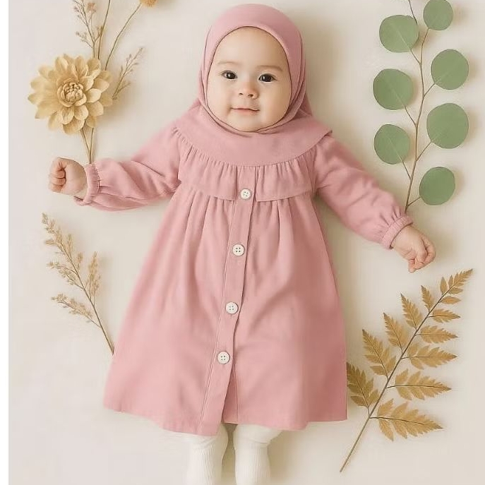 ASNA - Gamis Bayi Perempuan 0-18 Bulan Setelan Hijab Newborn Dress Jilbab Abaya