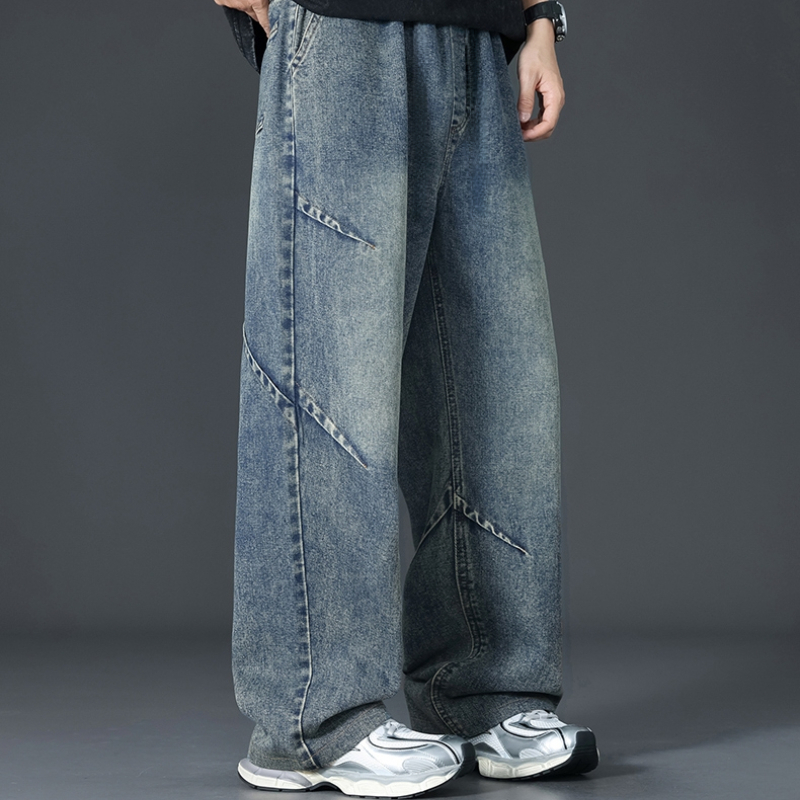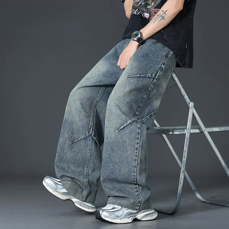 OVERSIZE VINTAGE Celana Jeans Pria Gombrong Skena Patchwork Denim Jumbo Cowok Loose Jeans Korean Style