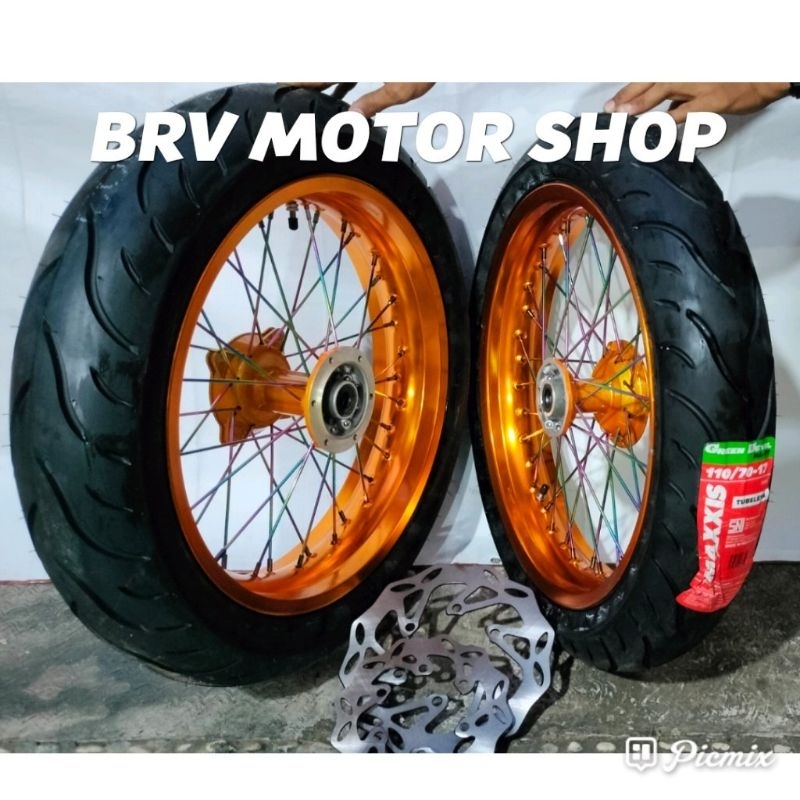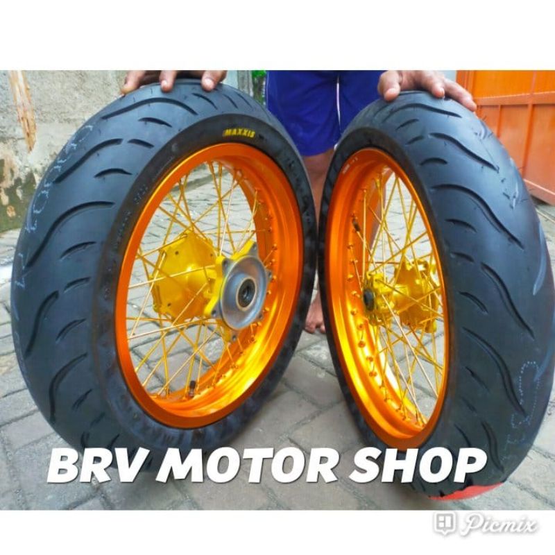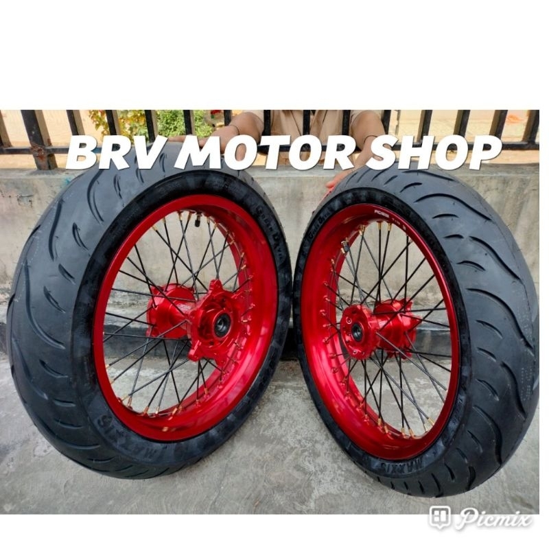 Ban Set KLX 150 Velg 300-350-17 Ban Maxxis Tromol Original KLX - Sumo KLX D Tracker 150 Tromol Ori
