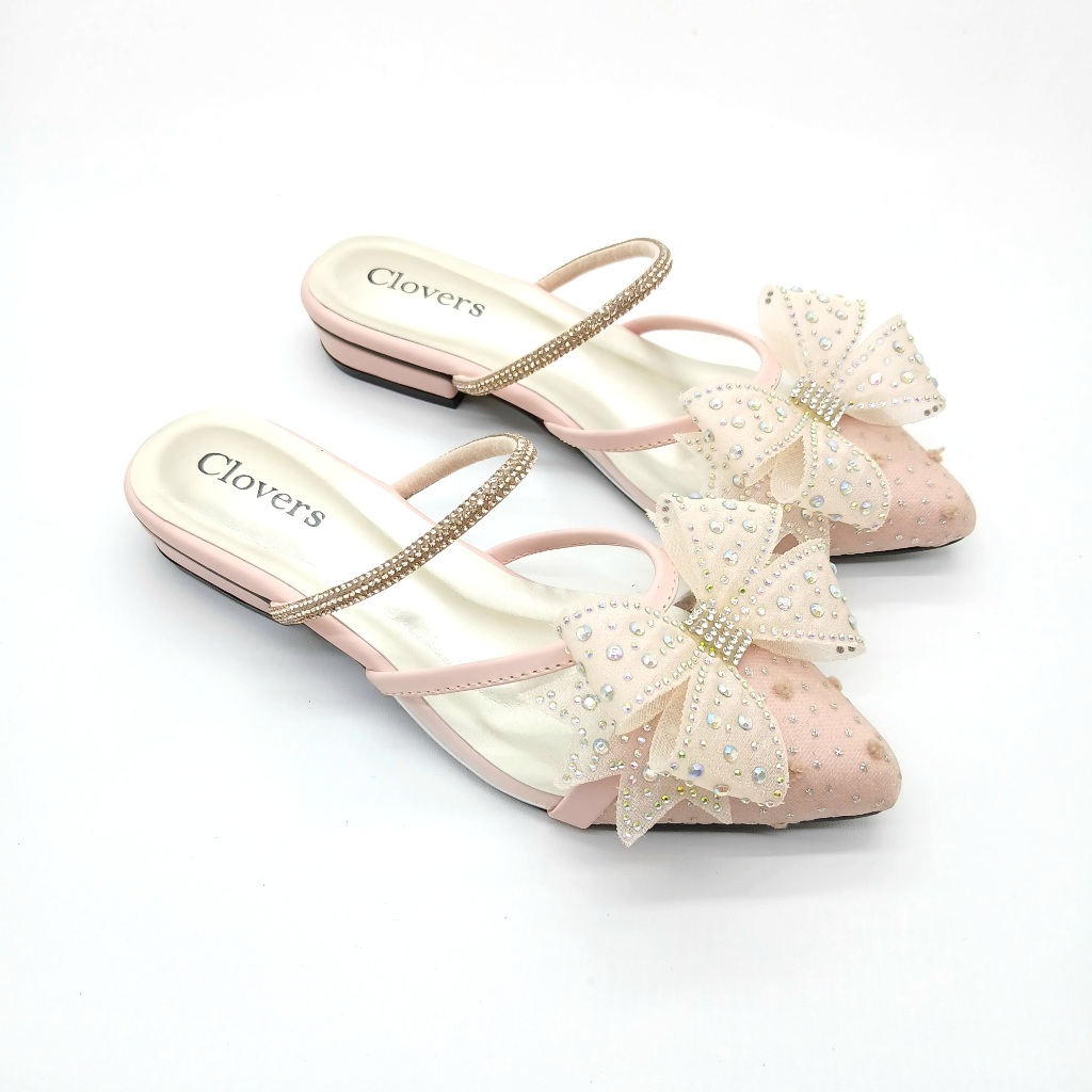 Clovers KIDs 202 Sandal Pesta Anak Permpuan Brukat Henis Flat Hak Tahu 2 CM
