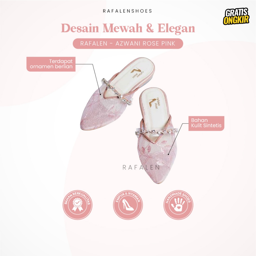 Rafalen Azwani Rosepink - Sendal Flat Kondangan Couple Ibu Dan Anak Elegant Kekinian By Rafalen Shoes