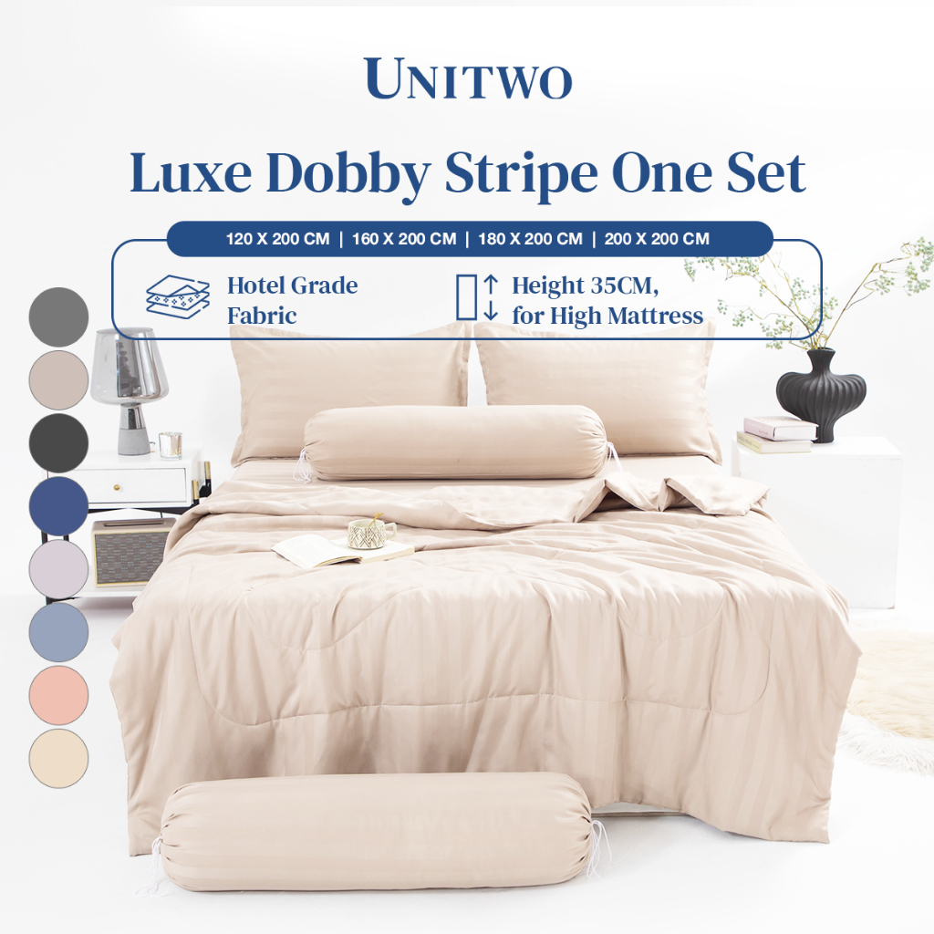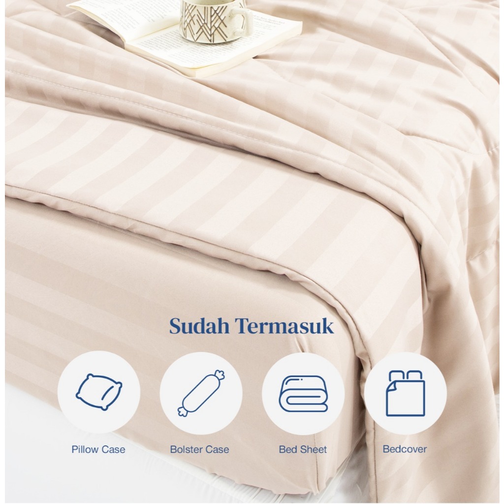 Unitwo Premium BED COVER + SPREI SET Luxe Bed Cover Set el Motif Salur Lembut Motif Stripe Aesthetic