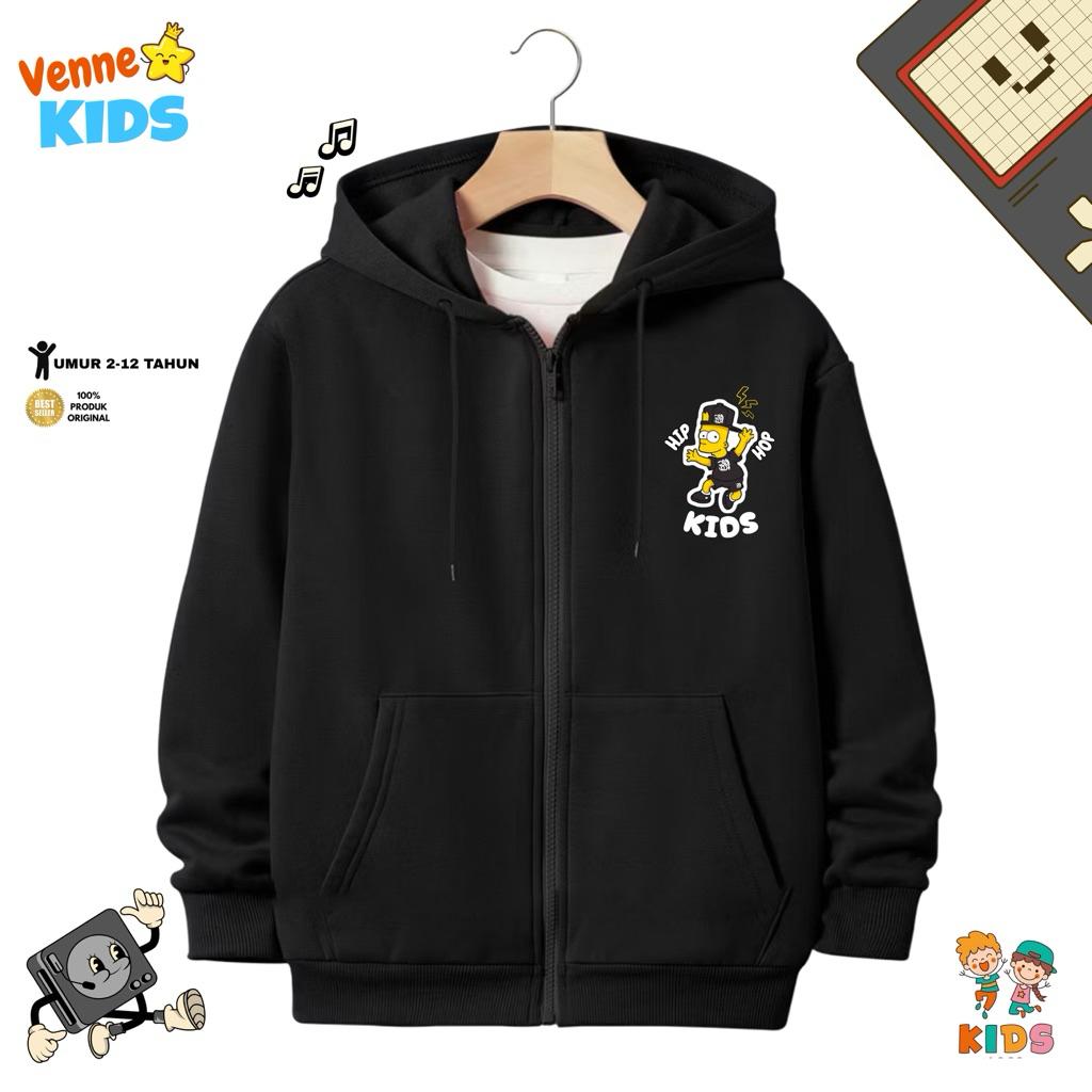 PAKAIAN ANAK LUCU Jaket Zipper Anak laki-laki Perempuan Usia 2-12Tahun Polos Sablon SHIMPSONS Bahan Fleece Premium by VE