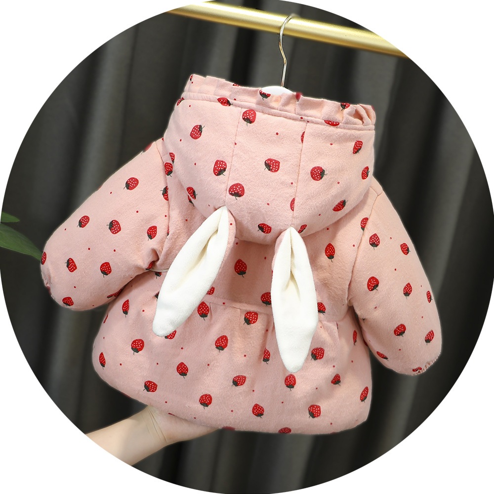 Jaket anak dan bayi perempuan / jaket beludru motif topi telinga stroberi