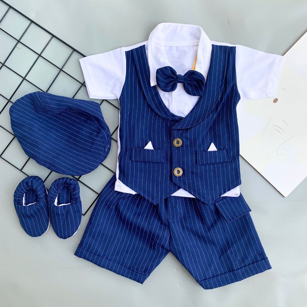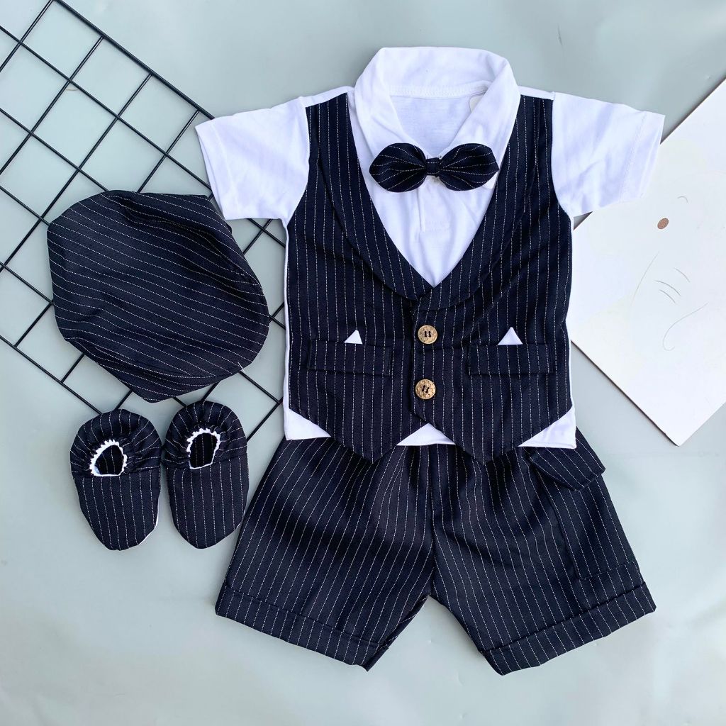babyshops pakaian setelan tuxedo baju bayi laki laki bayi cowok motif garis free topi dan sepatu nyaman dipakai sikecil