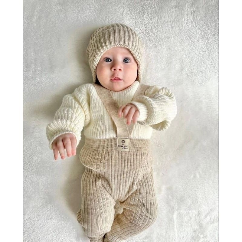 One set knit bayi 2-18 bulan size S M L overall baju anak new born + kupluk over all ciput lucu