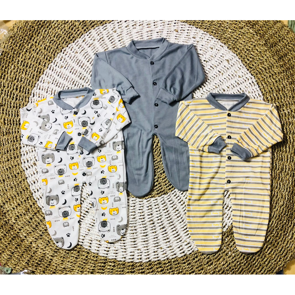 3 pcs Jumpsuit/Sleepsuit/Baju kodok Motif kaki Tutup Usia 0-6 bulan