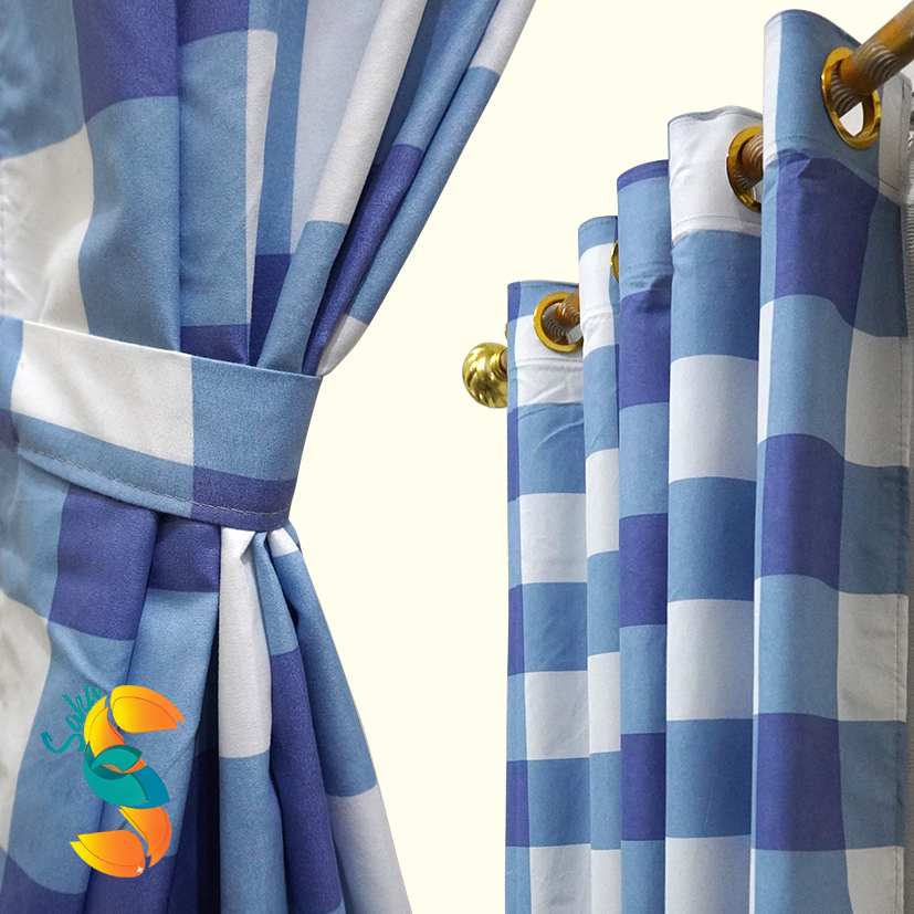 Gorden Jendela Pintu Minimalis Smokring Motif kotak Kotak Aesthetic Hitam Abu Navy White Maroon Abu