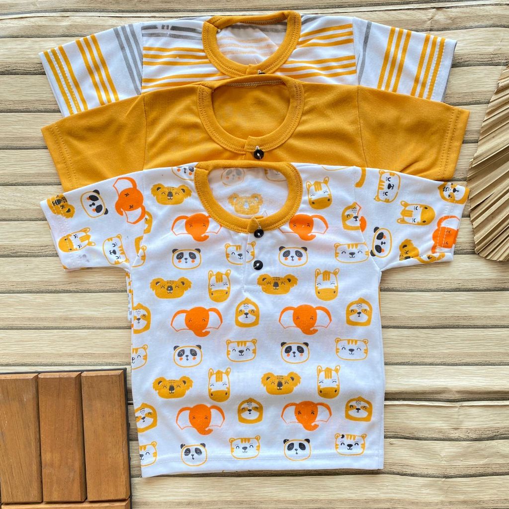 isi 3 Pcs Setelan Bayi Usia 3-12 Bulan Lengan Pendek Celana Pendek Kancing Depan Bayi Laki Laki Perempuan Baju Bayi Hari