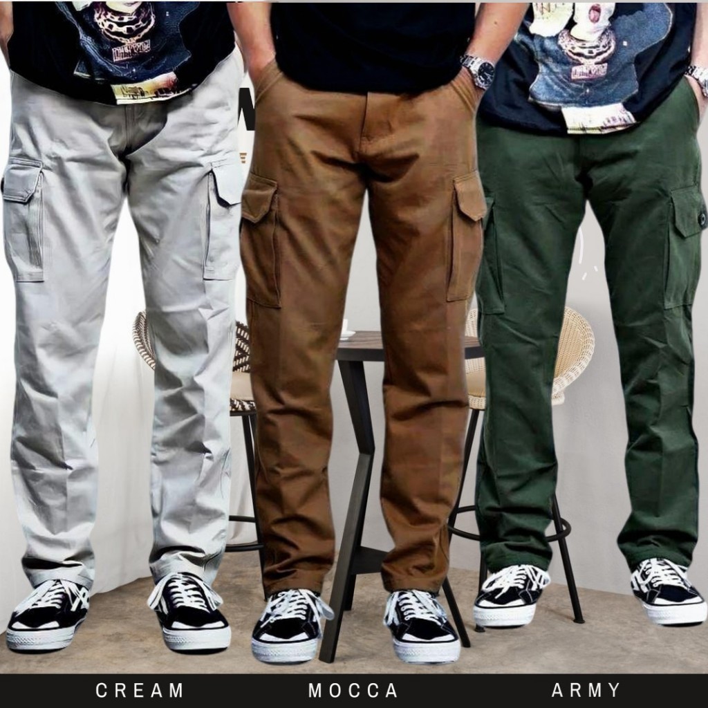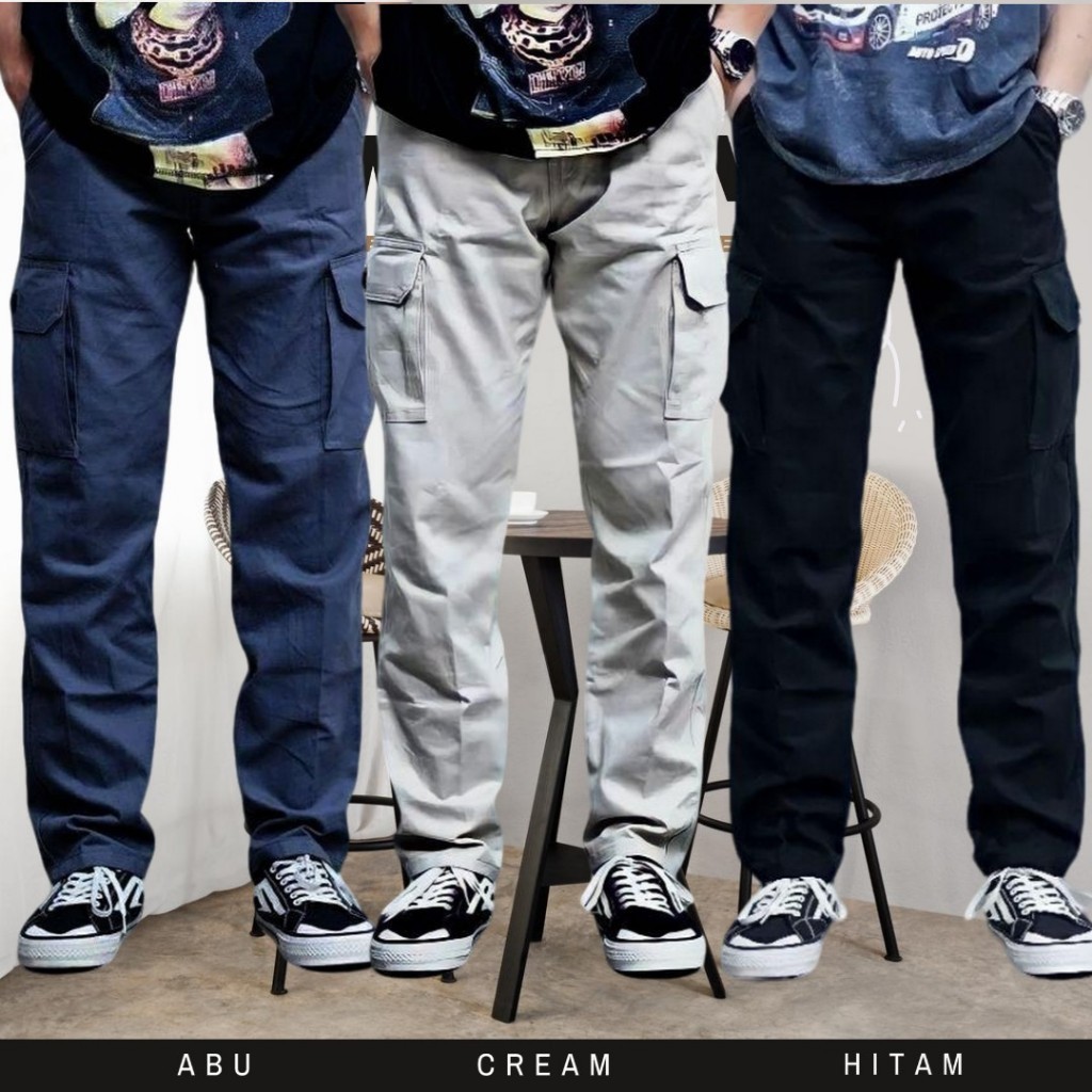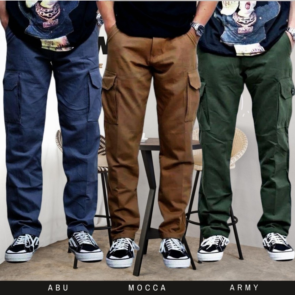 PROMO PAKET SUPER HEMAT 90 RIBU DAPAT 3 PCS CELANA PANJANG CARGO PINGGANG RIB KARET