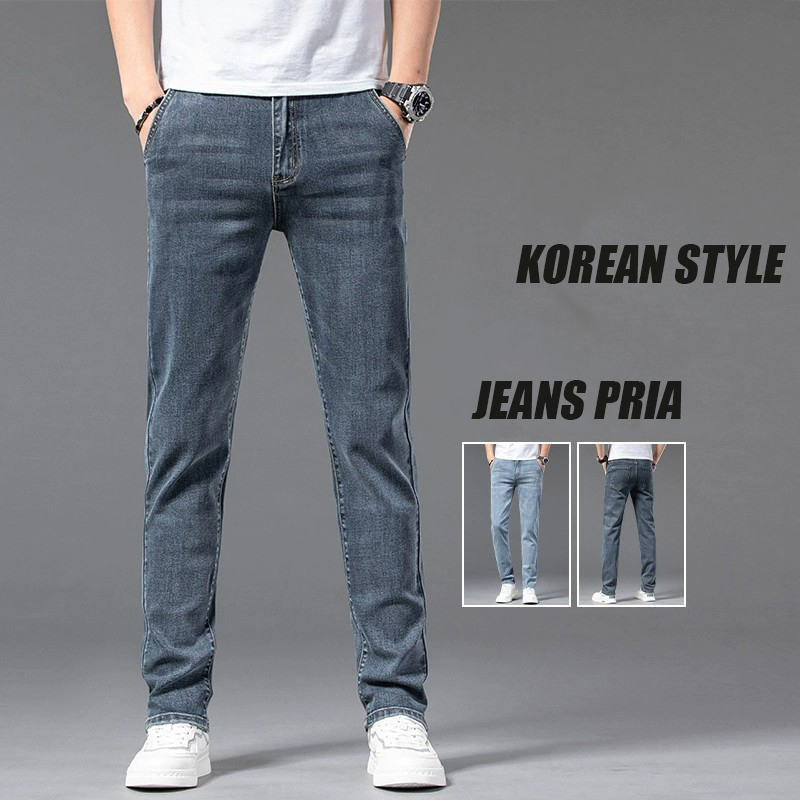 Celana jeans panjang pria hitam abu slimfit stretch cowok celana denim dewasa laki laki casual jens skinny pensil korean