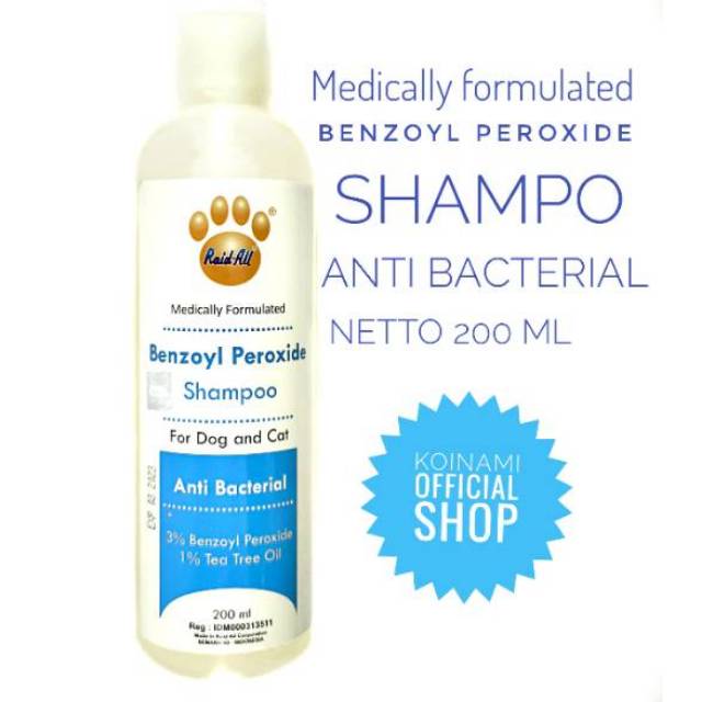 SHAM BENZOYL PEROXIDE 200ml biru / raid all / SHAM kucing anjing ANTI BAKTERY / GROOMING pet