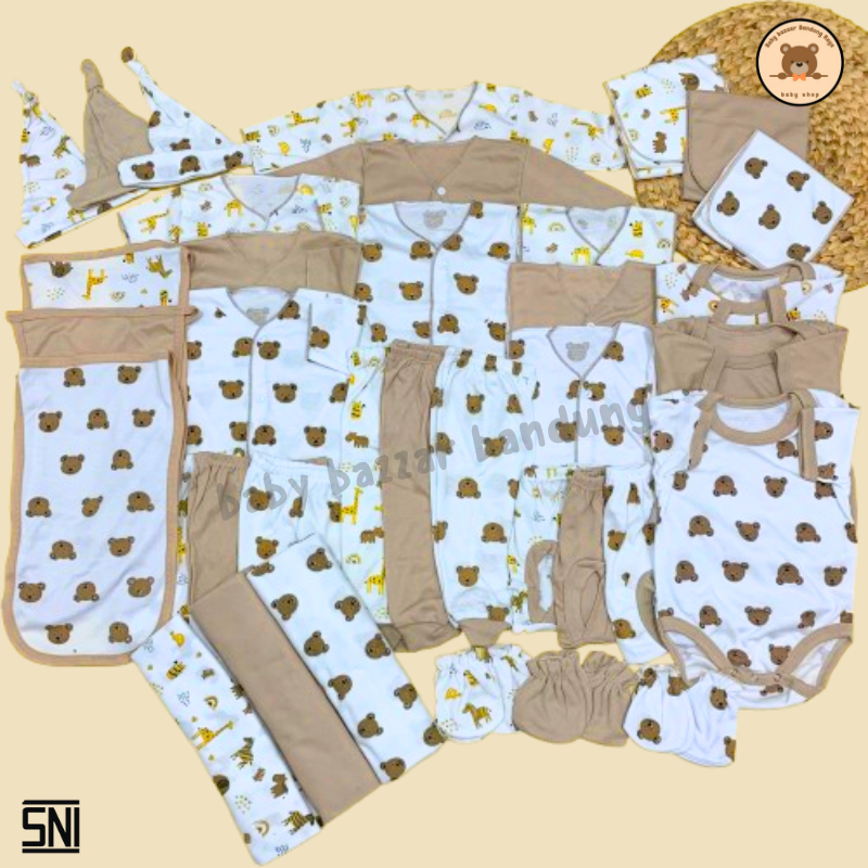 Baby Bazzar Paket Lengkap New Born Baju Dan Celana Bayi 36 PCS Seri Ber Rusa Coklat [FREE RENDOM BAYI Khusus 30PCS S