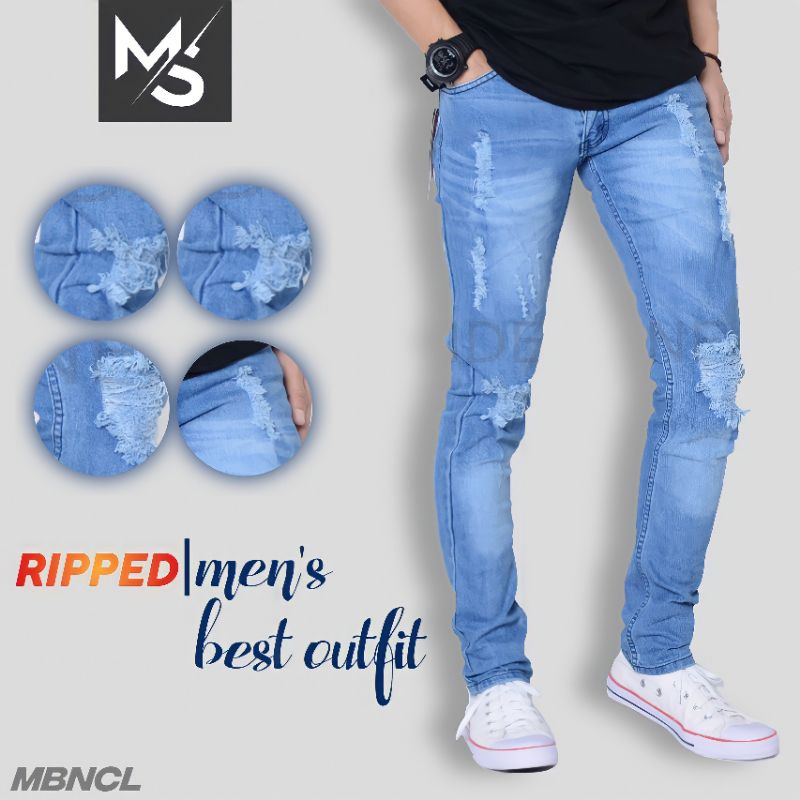 Celana Jeans Pria Panjang Sobek Remaja Distro Denim Dewasa Premium Robek Lutut Skinny Ripped Pensil Slimfit Stretch Stan