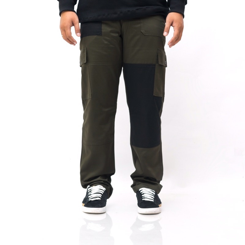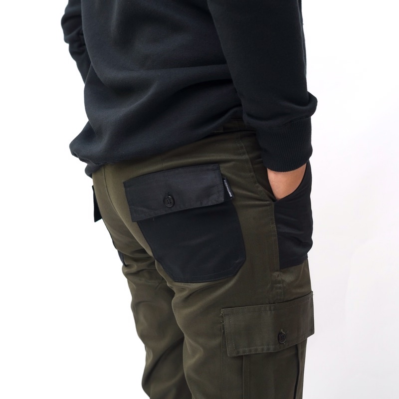 Puddinglane Celana Cargo Panjang Unisex Pria Wanita Long Pants Odda Green Black