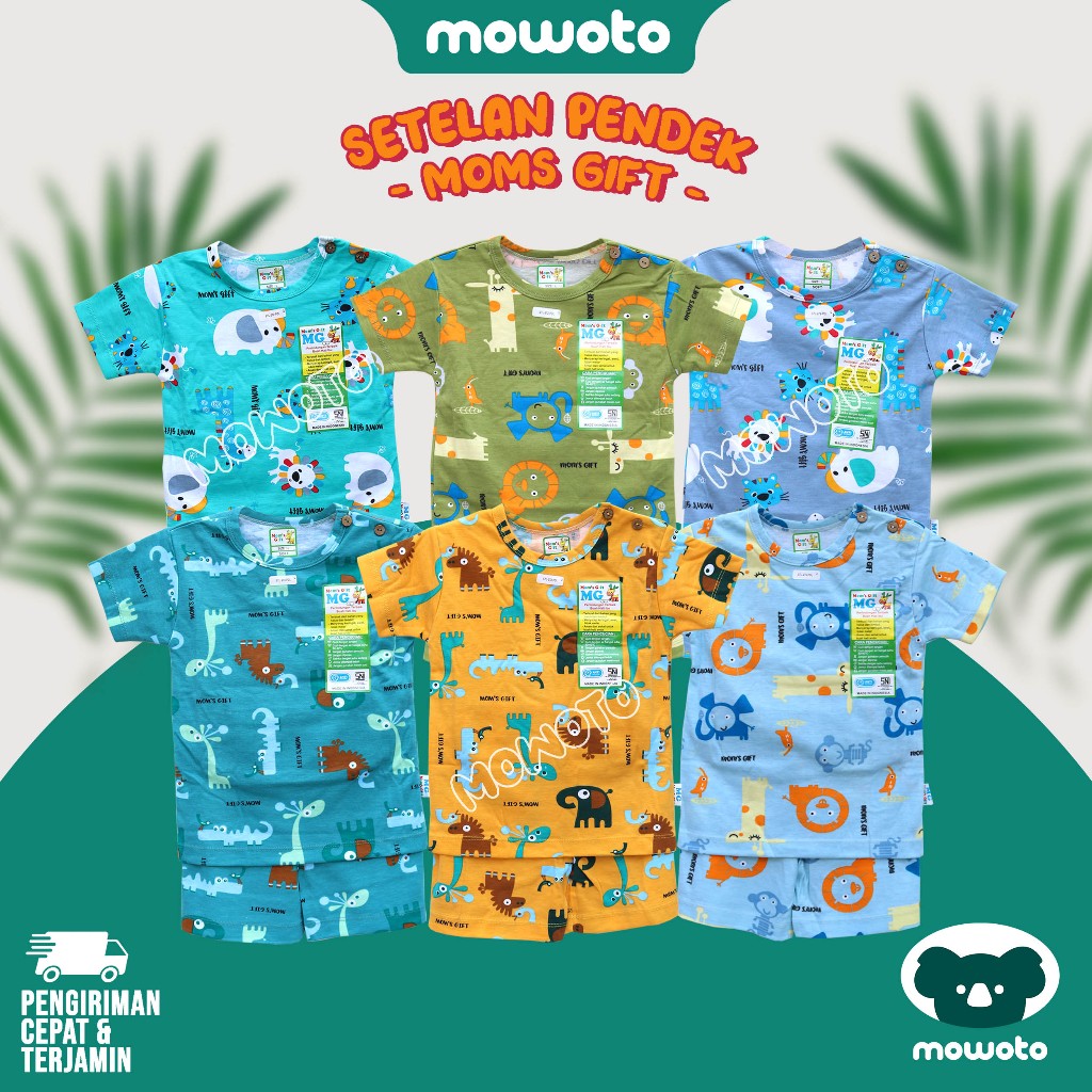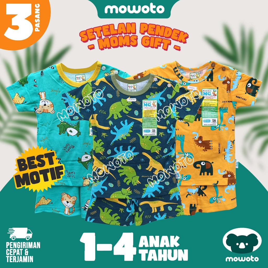 [ 3 Setel ] Setelan Moms Gift PENDEK Terbaru ( 0-4 tahun ) Setelan Baju Main Anak Laki Laki - Mowoto
