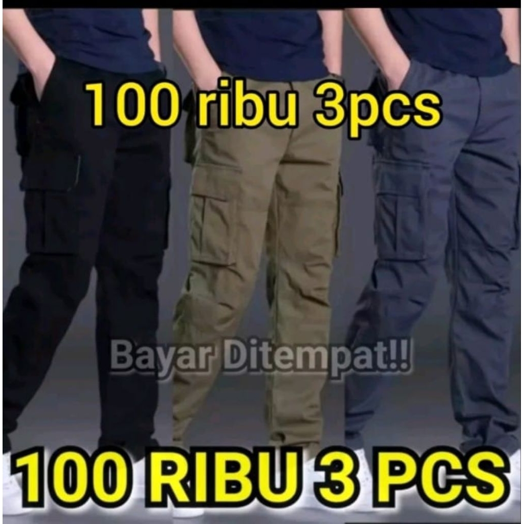 PROMO BESAR 100RIBU DAPAT 3 PCS CELANA CARGO PANJANG PRIA DEWASA CELANA CARGO PANJANG