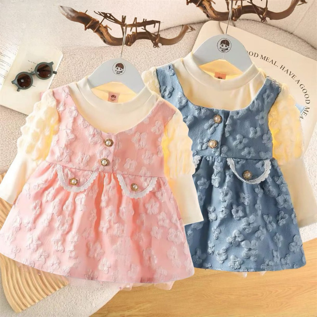 [KC Kids Collection ] Dress Bayi Lucu Lengan Bergelumbung Dress Baby Anak Perempuan Lengan Panjang