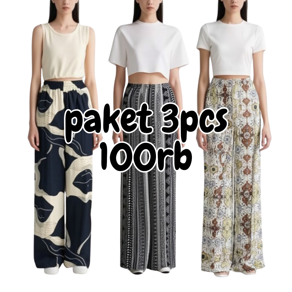 Kulot Hommy Wanita Paket 3pcs – Celana Motif Korea Casual Stylish Murah Meriah Fashion Wanita Kekinian Harga Terjangkau