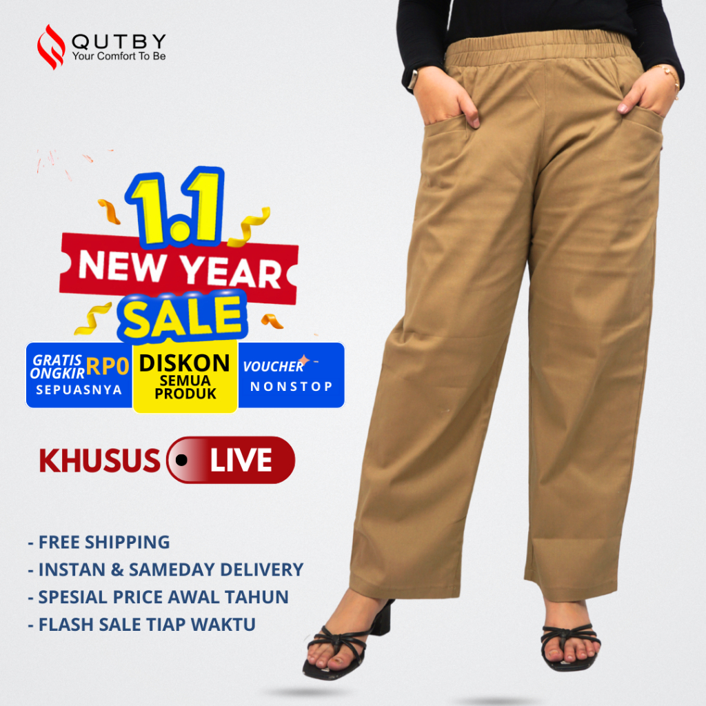 QUTBY - CELANA PANJANG WANITA KOREAN LONG PANTS / CELANA KULOT KATUN JUMBO PREMIUM