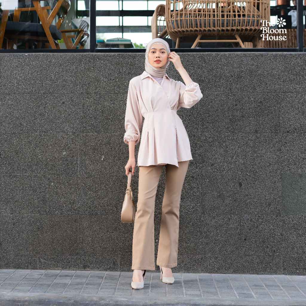 Rosetta Flare Pants Cotton Celana Wanita Highwaist Semi Cutbray Katun Stretch - The Bloom House B733