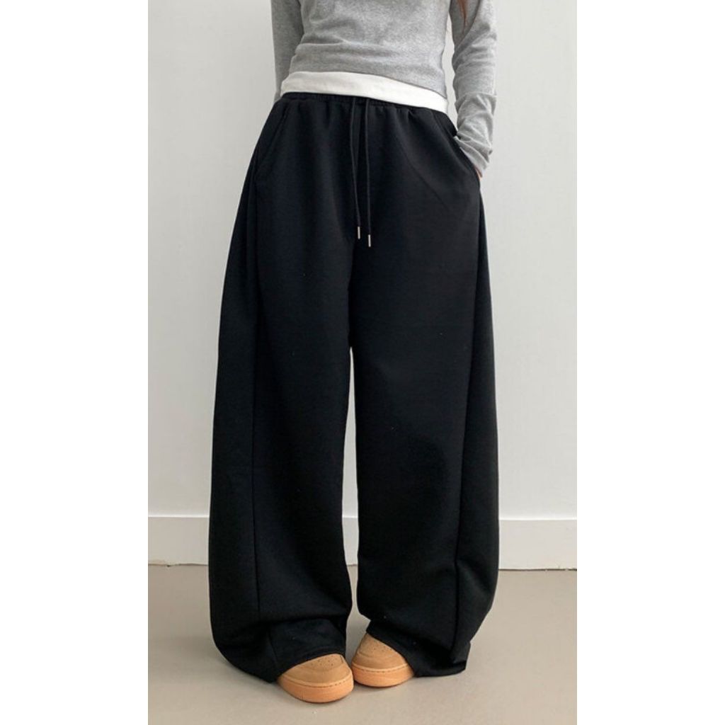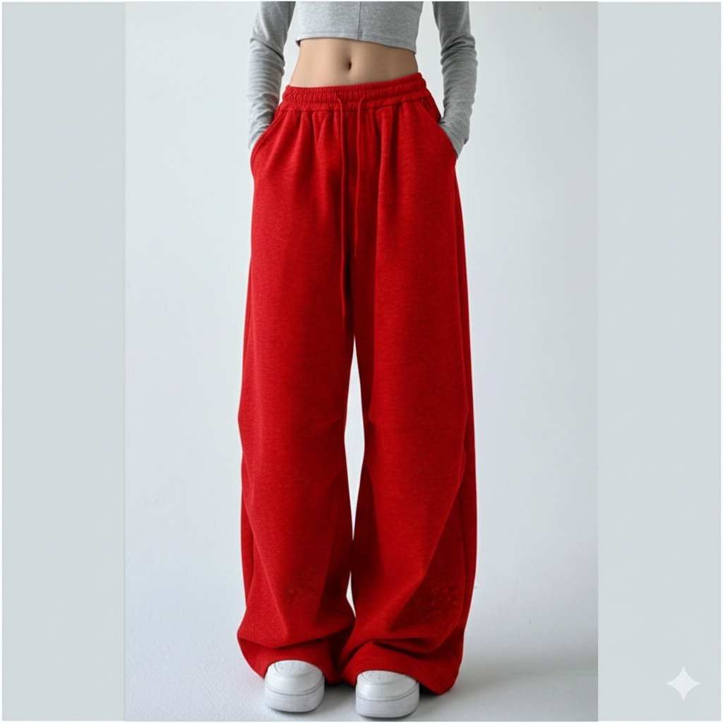 Spasic - Celana Sweatpants Loose Baggy Fleece Wanita Merah
