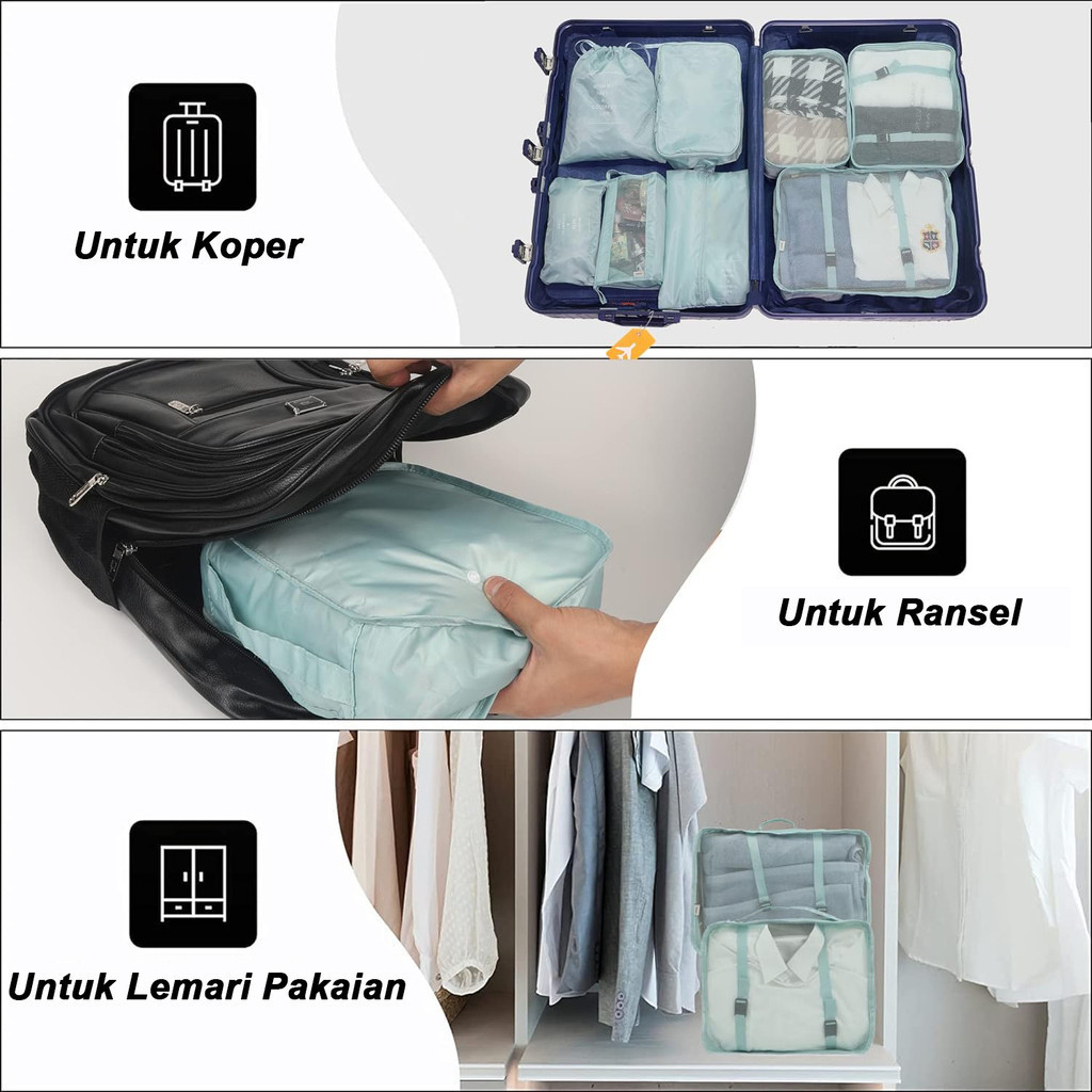 10 In 1 Travel Bag Tas Travel Organizer Bag Pouch Set Storage Luggage Bag Tas Penyimpanan Travelling Tas Travel Organize