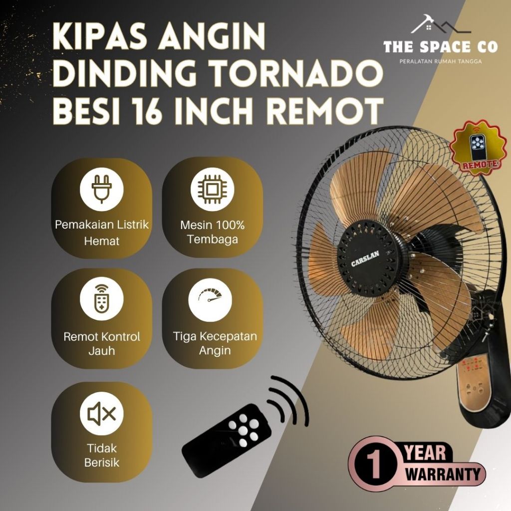 Kipas Angin Dinding Remot 16 Inch Gold 5 Baling Besi Hemat Daya Tidak Berisik Bergaransi