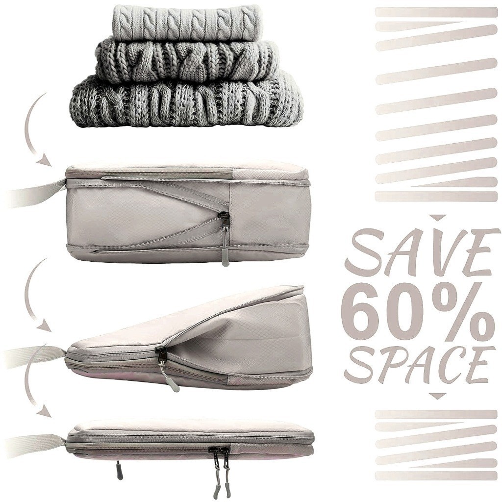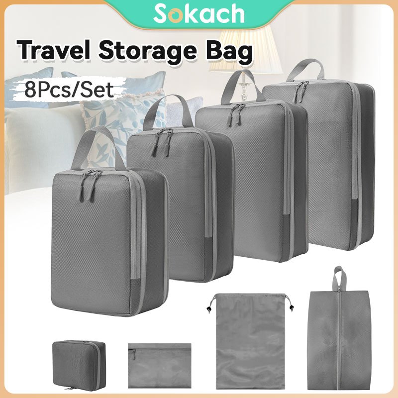 ✅8 In 1 Tas Traveling Pakaian Travel Bag Organizer Premium Travel Pouch Press Set Storage Luggage Tas Penyimpanan Koper