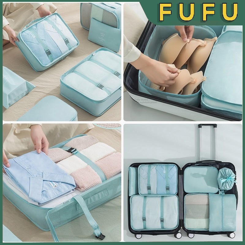 Fufu Tas Travel Organizer 7in1 / Organizer Storage Bag / Tas Dalam Koper / Tas Koper / Kantong Packing Pakaian Bahan Kai