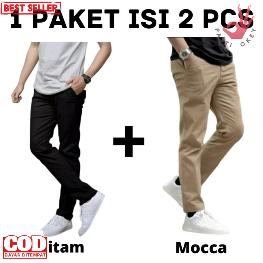 Pasti Okey - HEMAT (Beli1 Gratis1) Celana Chino / Chinos Panjang Pria Bahan Katun Melar Untuk Kerja