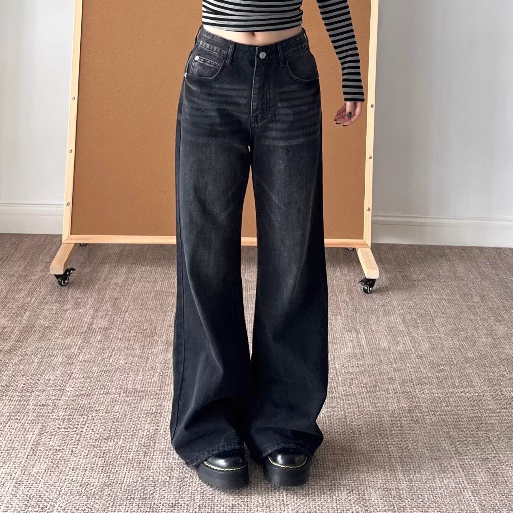 LULU Jeans Celana Jeans terbaru kulot Korea Biru muda pinggang tinggi - Baggy Jeans Wanita - baggy baggy Highwaist