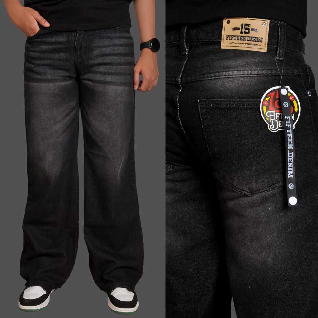 Celana Jeans Panjang Pria Baggy Skena Unisex HITAM PEKAT - Oversize Stylish Anti Ribet