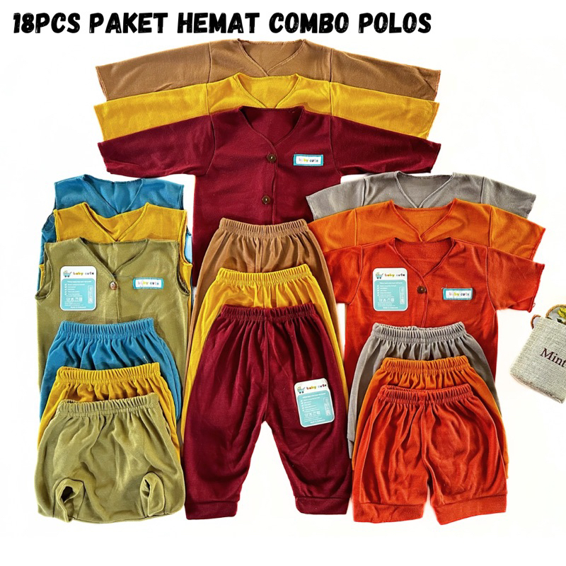 NAKITA 18pcs Paket Premium Printing Perlengkapan Baju Celana Bayi Baru Lahir 0-12 Bulan Combo Mix Polos SNI Sale 12.12