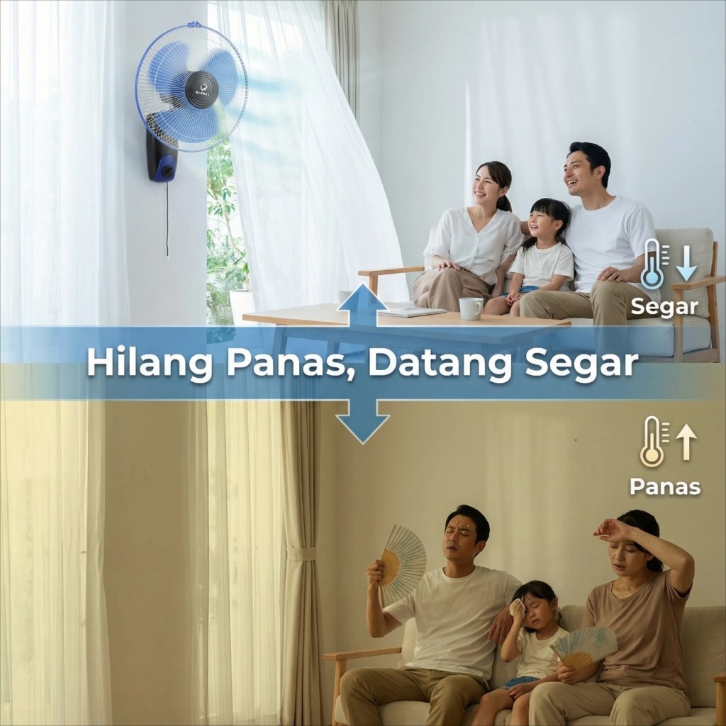 Kipas Angin Dinding/Tembok 12 Inch 3 Speed - Baling Besar, Angin Kencang, 180° Swing, Tanpa Getar & Bising, 40 Watt Hemat Listrik