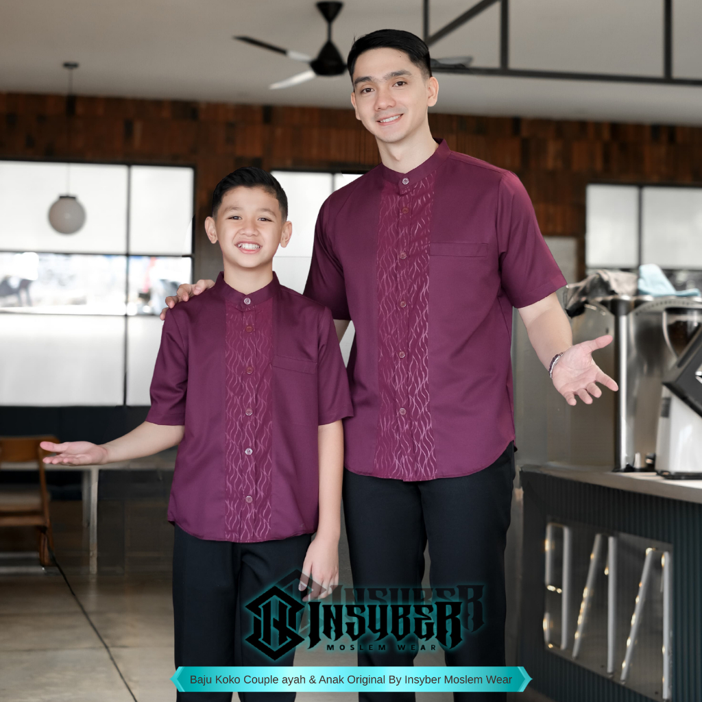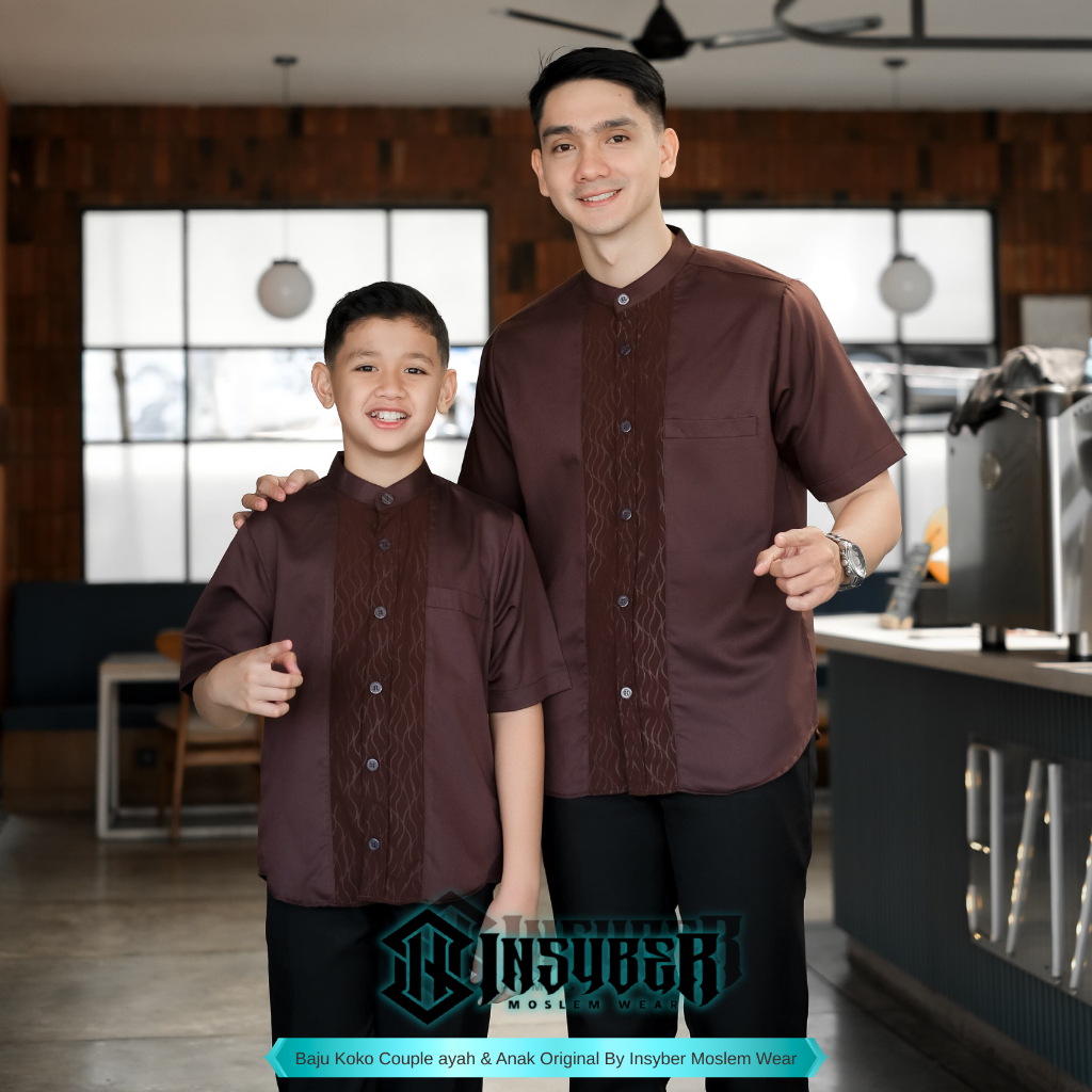 Baju Koko Couple Ayah Anak Laki Laki Lengan Pendek Motif Jordan Bahan Toyobo Import Terbaru 2026 Warna Mahogany Size Dew